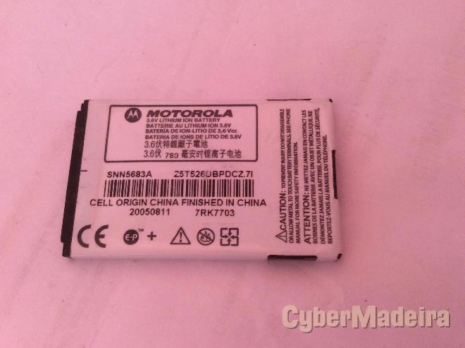 Bateria original Motorola SNN5683A compatível com vários modelos de telemóveis Motorola entre eles o Motorola V550. Disponíveis para outras marcas e modelos. Qualquer dúvida envie mensagem. Respondo diariamente as mensagens, se não foi notificado da resposta até o dia seguinte verifique a pasta spam do seu e-mail. Se optar pelo contacto telefónico deixe o número no espaço onde escreve a mensagem.